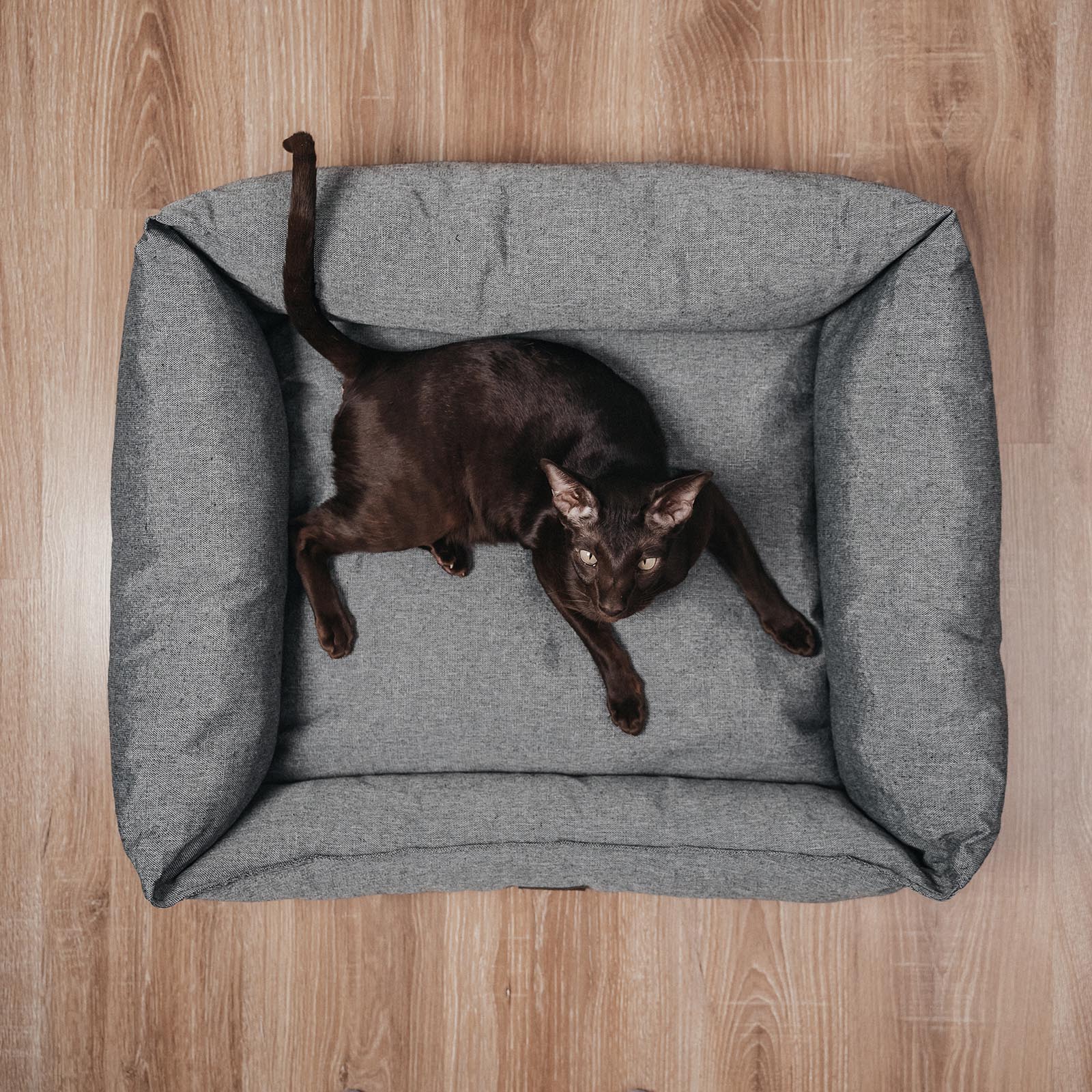 Лежанка универсальной расцветки впишется в любой интерьер. А прямоугольная форма позволяет поставить ее там, где ваш питомец предпочитает отдыхать — в углу, вдоль мебели, на подоконнике или у стены.